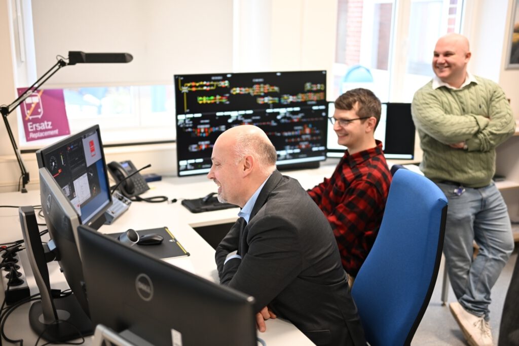 In produktiver Atmosphäre wurden die bisherigen Schritte der Einbindung der Ausbildungsinhalte in den Studiengang und das weitere Vorgehen für die Zertifizierung besprochen. Die moderne Ausstattung der Ostfalia Salzgitter mit dem Bahnbetriebssimulator und der integrierten Stellwerkssimulation sowie das neue ProVi-Labor (Planungstool für Leit- und Sicherungstechnik) wurden vorgestellt und getestet.
