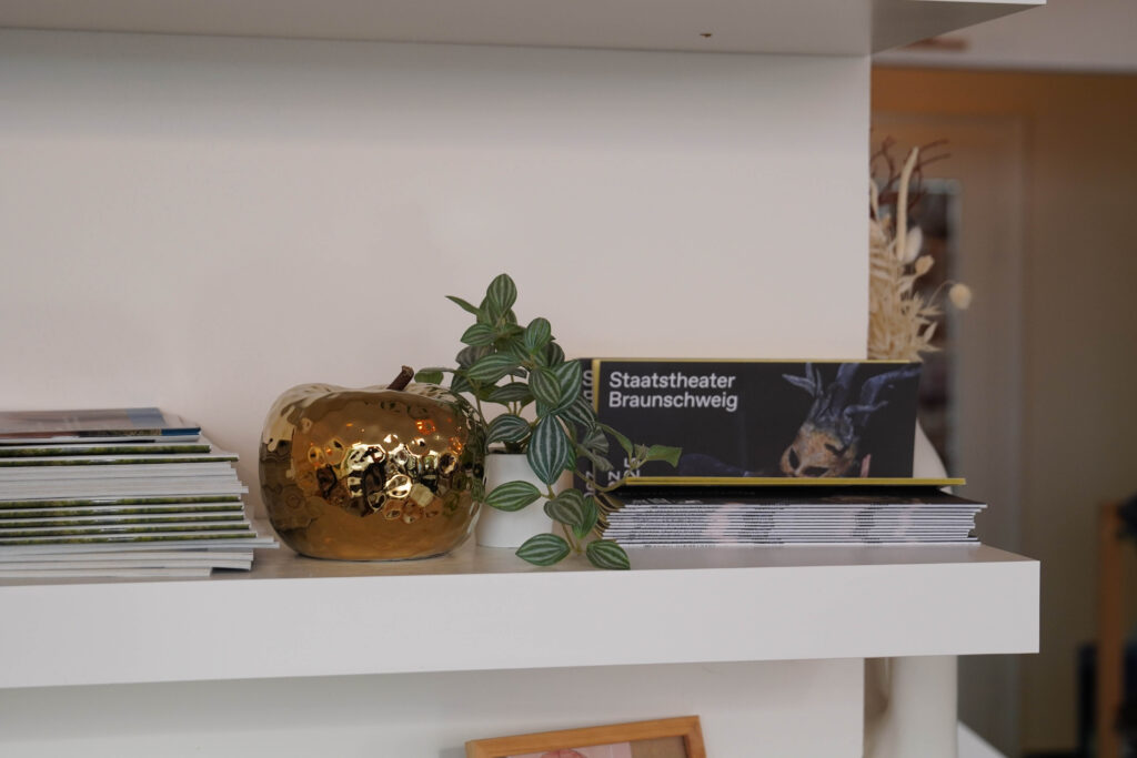 Auch der Raum selbst ist Teil dieses Anspruchs. Interieur, Licht, Farben und Details beeinflussen, wie sich Gäste im Café bewegen und wie lange sie bleiben. Ein besonderer Ort ist für Ayşenur Demir die Bücherwand: gefüllt mit Fotos, Nachrichten, politischen und gesellschaftlichen Themen.